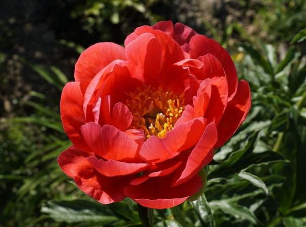Пион Coral Magic (Корал Мэджик). Более насыщенного цвета, чем привычные нам коралы (Чарм, Сансет, Пинк Хавайян и др.) Цветок чашевидный, полумахровый, исключительно красивого сложения и цвета. Каждый побег несет один крупный цветок. Цветоносы не побегают, очень прочные, листьев много. Высота около 75 см. Срок цветения ранний.