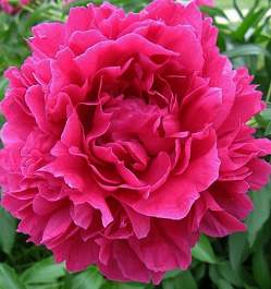 Пион Felix Crousse (Феликс Крусс). Цветок насыщенно-розовый, бомбовидной формы, махровый. Куст высотой до 90 см, стебли сильные, листва серо-зелёная. Сорт позднего срока цветения.