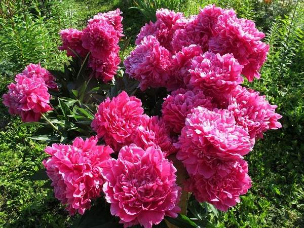 Пион Felix Supreme (Феликс Суприм). Махровый розовидный — полушаровидный. Цветок рубиново-красный, блестящий, плотного сложения, диаметром 17 см. Аромат сильный, приятный, шиповниковый. Куст раскидистый, высотой 90 см. В разгаре цветения стебли требуют опоры, поскольку цветки очень крупные и тяжелые. Цветёт обильно. Средне-поздний. Очень привлекательный цветок для срезки и украшения сада.