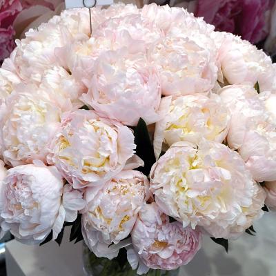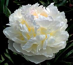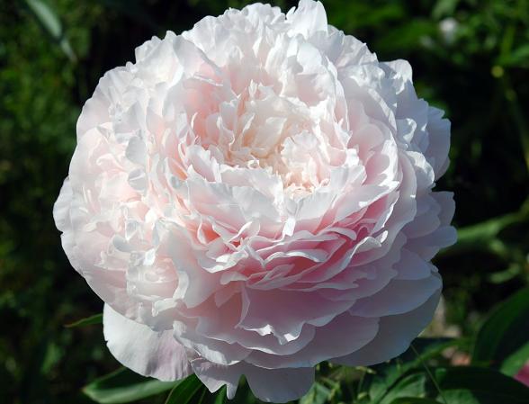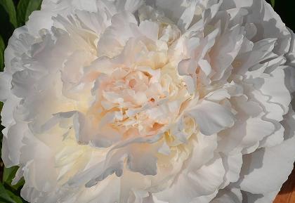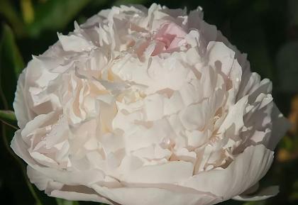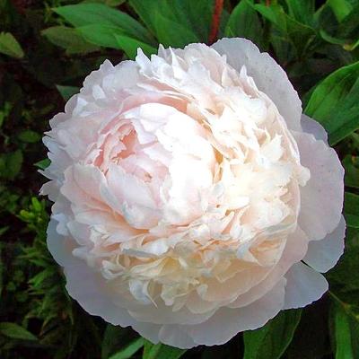 Пион Florence Nicholls (Флоренс Николс). Цветок сказочной красоты. Махровый розовидный. Диаметром 16 см, белый с розовым оттенком, плотный, прекрасной формы. К концу цветения окраска изменяется до снежно-белой. Тычинки отсутствуют. Аромат слабый.