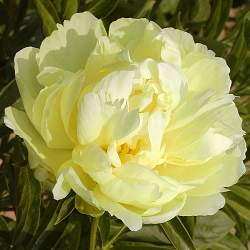 Пион Goldmine (Голдмайн). У этого пиона все жёлтое, даже корни. Удивительный молочноцветковый пион. Цветок махровый, крупный, жёлто-лимонный, с возрастом светлеет. Листья маленькие, ярко-зелёные, весной жёлто-зелёные. Средне-позднего срока цветения. Высота 70-80 см. Стебли сильные, жёлто-зелёные.