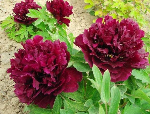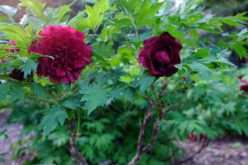 Пион древовидный — морозоустойчивый кустарник, достигающий высоты 2 м, с крупными ярко-зелеными листьями. На одном кусте может быть от 30 до 70 цветков. Диаметр каждого от 20 до 25 см. Продолжительность цветения 12-14 дней. Растение декоративно и после цветения из-за необычной формы листьев.