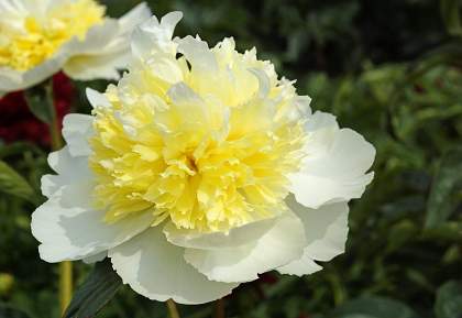 Чем старше пион и лучше условия его содержания, тем более пышным и махровым будет цветок этого сорта. Вплоть до полностью махрового шара, в котором плотно уложены золотистые стамидонии и бело-кремовые петалодии.