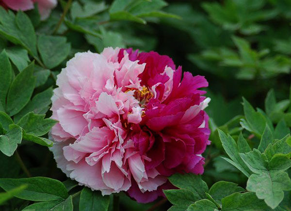 Пион древовидный — морозоустойчивый кустарник, достигающий высоты 2 м, с крупными ярко-зелеными листьями. На одном кусте может быть от 30 до 70 цветков. Диаметр каждого от 20 до 25 см. Продолжительность цветения 12-14 дней. Растение декоративно и после цветения из-за необычной формы листьев. Пион неприхотлив, устойчив к болезням. На одном месте без пересадки может расти более 50 лет. Рост энергичный.