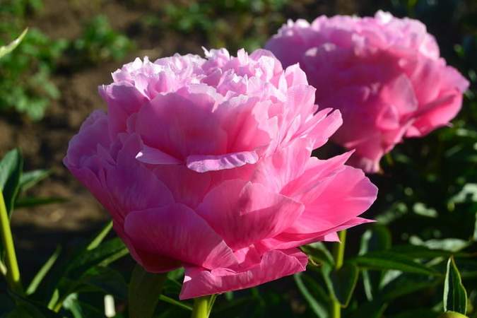 - Несколько пионов рядом — это уже большая однородная масса резной листвы. Если высаживать рядом другие растения, то лучше с цельными листьями. Это лилейники, ирисы, хосты, бадан.