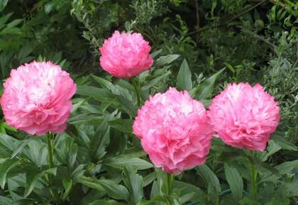 - У высоких пионов часто оголены внизу стебли. В этом случае требуется посадить растения, закрывающие "ноги" пиона. Чаще всего на эту роль подходят округлые подушковидные растения: герань. гейхера, манжетка, буквица, бадан, хоста, низкие ирисы, подушковидные астры, примулы, маленькие летники.
