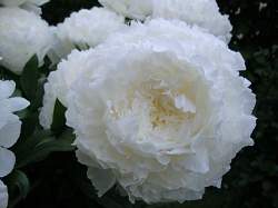 Пион Joseph Christie (Джозеф Кристи). По мнению экспертов, лучший из поздних махровых пионов. Махровый розовидный, совершенной формы, плотный, центр с бутоном. Белый с нежным зеленовато-кремовым свечением при открытии. Стебли прямые, прочные.