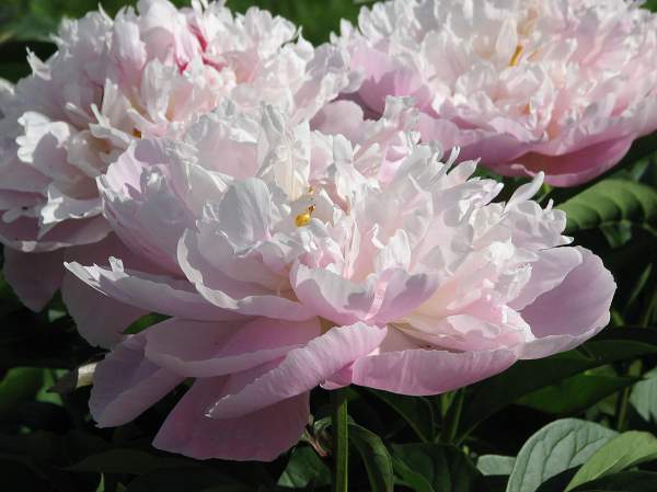 - У высоких пионов часто оголены внизу стебли. В этом случае требуется посадить растения, закрывающие "ноги" пиона. Чаще всего на эту роль подходят округлые подушковидные растения: герань. гейхера, манжетка, буквица, бадан, хоста, низкие ирисы, подушковидные астры, примулы, маленькие летники.