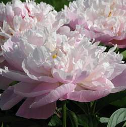 Пион Lady Alexandra Duff (Леди Александра Дафф). Махровый, розовидный. Цветение сверхобильное, может зацвести уже в год посадки. На 4-5-летних кустах более 100 бутонов. Бутоны собраны в группы по 3-5 шт. При роспуске цвет сиренево-розовый, по мере цветения становится более светлым, до светло-розового.
