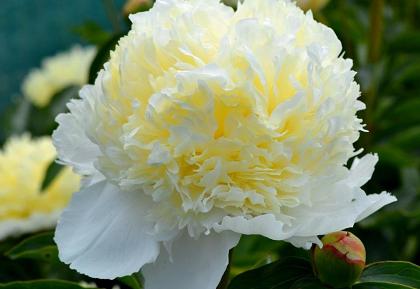 Пион Laura Dessert (Лаура Десерт). Корончатые соцветия состоят из широких белых лепестков с легким оттенком желтого. Центр бутона окрашен в более насыщенный кремово-желтый цвет. Кажется, будто соцветия сияют ярче летнего солнышка. А сладостный аромат, который Вам подарят эти пышные соцветия, просто великолепен.