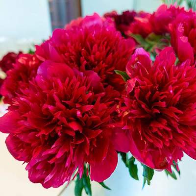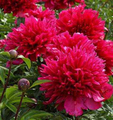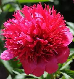 Пион Many Happy Returns (Мэни Хеппи Ретёнз). Красивейший красный пион с необычной формой цветка. Наружные лепестки крупные, округлые, внутренние узкие, волнистые, некоторые с золотистыми кончиками. Общая форма — шаровидная. Диаметр цветка 17 см.