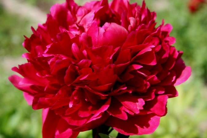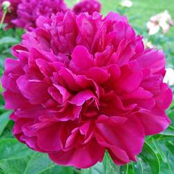 Пион Mary Brand (Мэри Бранд). Махровый розовидный. Цветок блестящий, тёмно-красный с фиолетовым оттенком, диаметром 16 см. Куст высотой 70 см. Стебли мощные, прямые. Листья удлинённые, заострённые, тёмно-зелёные. Раннего срока цветения.