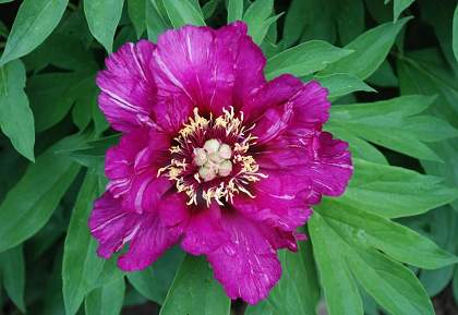 Пион Morning Lilac (Монинг Лилак). Насыщенно сиренево-фуксиевый со светлыми вспышками на лепестках, золотыми тычинками и 3-4 рядами волнистых лепестков. Незабываемые огромные цветки обладают легким ароматом. В группе ИТО-пионов расцветает одним из первых, цветет на протяжении шести недель! Быстро формирует компактный плотный куст и обильно цветет.