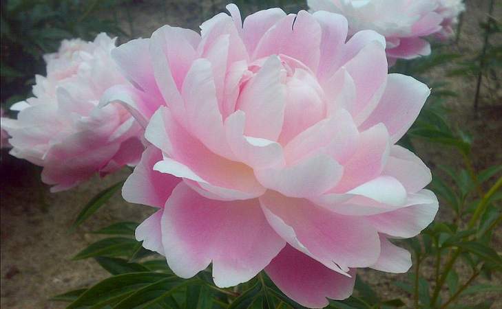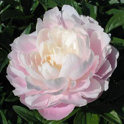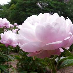 Пион Mrs. Franklin D. Roosewelt (Миссис Франклин Д. Рузвельт). Махровый розовидный. Светло-розовые крупные лепестки с лососевым оттенком. Куст раскидистый. Аромат очень приятный. Золотая медаль APS 1948 года; Гранд Чемпион выставок APS 1963 и 1984 годов. Коллекционный сорт.