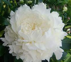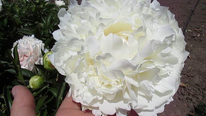 Пион Mrs. J.V. Edlund (Миссис Джей Ви Эдлунд). Чудесный белоснежный пион. Махровый розовидный. Цветок диаметром 17 см. Высота куста 90 см. Аромат слабый. Срок цветения очень поздний.