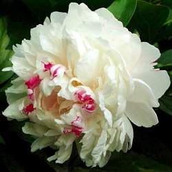 Пион Мультицвет. Это компактный сорт с корончатыми цветами молочно-белого цвета, дополненными нежно-розовыми вкраплениями. Сорт обильно цветет в конце сезона, ценится за яркий сладкий аромат, отлично смотрится в групповых посадках, может использоваться для композиций из срезанных цветов.