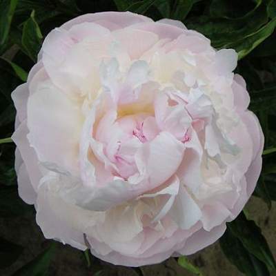Пион My Love (Май Лав). Перламутрово-розовый при роспуске, со временем цветок становится светло-розовым, заканчивает цветение почти белым. Цветок крупный — 19 см в диаметре. Листья темно-зеленые. Куст высокий (90 см)с прочными стеблями. Приятный, не слишком сильный аромат.