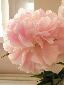 Пион My Love (Май Лав). Перламутрово-розовый при роспуске, со временем цветок становится светло-розовым, заканчивает цветение почти белым. Цветок крупный — 19 см в диаметре. Листья темно-зеленые. Куст высокий (90 см)с прочными стеблями. Приятный, не слишком сильный аромат.