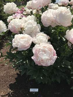 Срок цветения поздний. Куст раскидистый, высотой 80-90 см. Стебли толстые, изгибаются. Цветение обильное. Выдающийся по красоте сорт для украшения сада. Великолепная поздняя срезка. Награды: Золотая медаль Американского общества пиона, 1941 и 1972 гг.