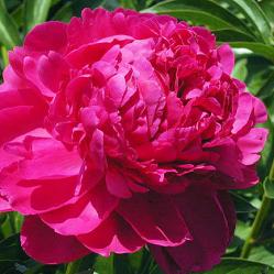 Пион Orient Jewels (Ориент Джуэлс). Цветок крупный, розовидный, малиновый с серебристой каймой, махровый. Прекрасно подходит для срезки. Куст высотой 80-100 см. Сорт среднего срока цветения.