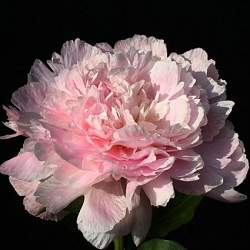 Махровый цветок диаметром 14 см, компактный, нежно-розово-сиреневый. Аромат исключительно приятный. Куст высотой до 90 см. Стебли прочные. Цветение обильное. Среднего срока цветения.