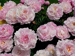 Пион Pillow Talk (Пиллоу Ток). Махрово-розовидный. Цветок крупный (25 см), но изящный, нежно-розовый, пушистый. Аромат не очень сильный. Стебли крепкие, с умеренным ветвлением. Листья полуглянцевые. Отличная срезка. Золотая медаль американского общества пионов.