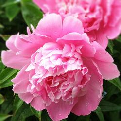 Пион Pink Cameo (Пинк Камео). Цветок диаметром 17 см, перламутрово-розовый, плотный, махровый, сложен из правильно расположенных вогнутых лепестков. Обладает лёгким и очень приятным ароматом. Сорт позднего срока цветения. Прекрасен в срезке.