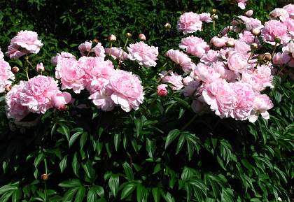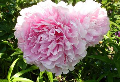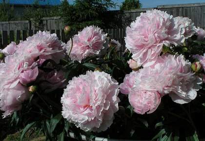 Пион President Taft (Президент Тафт). Крупный махровый цветок, 18 см, нежно-розового цвета с небольшими вкраплениями малинового. Сорт старый, часто его рассматривают как "Reine Hortense". Сорт не утратил популярность за счёт высоких декоративных качеств и приятного аромата.