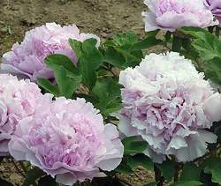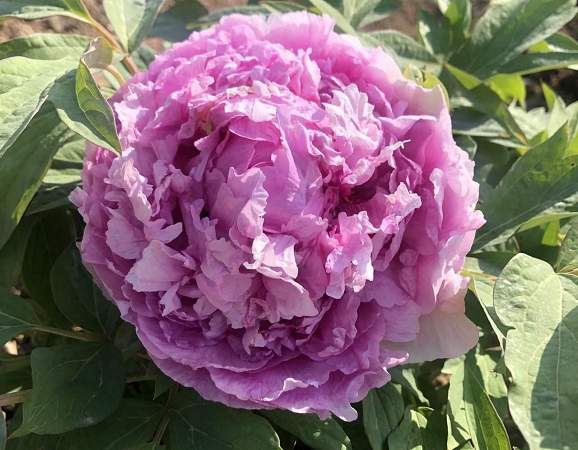 Пион Qing Cui Lan, Lavender Blue (Лавендер Блу). Цветок густомахровый, корончатой формы, роскошный. Окраска розовато-сиреневая. Цветки смотрят вверх и в стороны. Побеги прочные. Листья с фиолетовым оттенком. Высота куста 150 см. Устойчив к болезням и неблагоприятным условиям.