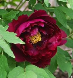 Пион древовидный Qing Long Wo Mo Chi (Дракон в Пруду). Форма цветка может быть анемоновидная и корончатая. Часто на одном кусте встречаются цветки разного типа. Очень красивого лилово-пурпурного цвета!