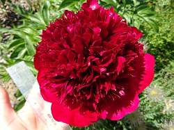 Пион Red Charm (Рэд Чарм). Цветок малиново-тёмно-красный блестящий, плотный, диаметром 20-22 см, не выгорает. Пестики опушённые, с розовыми рыльцами. Куст высотой 80-90 см. Стебли прочные. Один из лучших красных гибридов. Чемпион многих выставок.