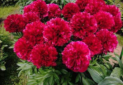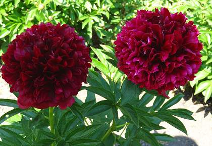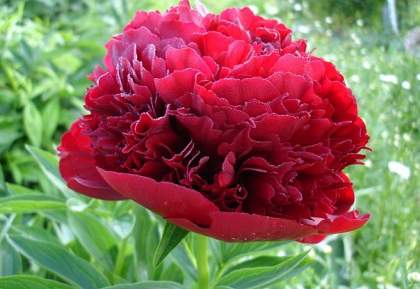 Пион Red Grace (Ред Грейс). Махровый шаровидный. Чисто-темно-красный, сверкающий. Цветок при полном раскрытии образует роскошный шар. Стебли прочные, прямостоящие. Один из лучших гибридов.