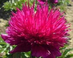 Цветы махровые, ярко-малиновые, c игольчатыми лепестками в центральной части великолепно смотрятся среди камней в крупном альпинарии или саду камней. Растение энергичное, производит много цветоносов, зацветает одним из первых.