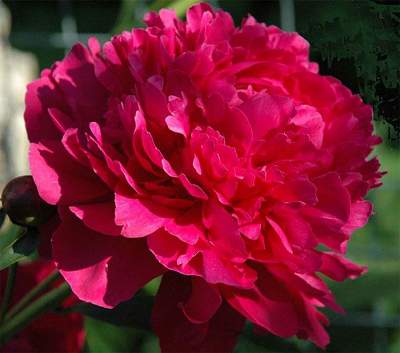 Цветок махровый, рубиново-красный. Обильное и продолжительное цветение. Сорт открывает сезон цветения махровых пионов. Высота куста до 60 см. Наилучшее цветение пионы дают в возрасте 4-10 лет.