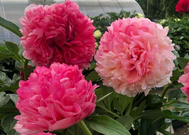 - Несколько пионов рядом — это уже большая однородная масса резной листвы. Если высаживать рядом другие растения, то лучше с цельными листьями. Это лилейники, ирисы, хосты, бадан.