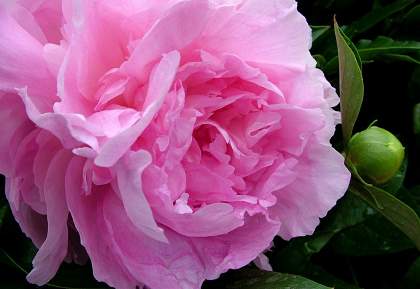 Пион Suzie Q (Сьюзи Кью). Махровый розовидный. Аромат лёгкий. Цветок диаметром 17 см, плотный, ярко-розовый. Кусты высотой 70 см. Стебли прочные. Листья узкие, мелкие.