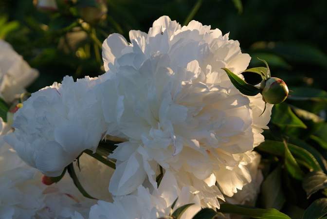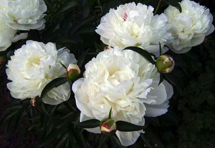 Пион White Sarah Bernhardt (Уайт Сара Бернар). Белоснежный вариант знаменитого сорта Сара Бернар. Аромат цветка сладковатый, не очень интенсивный. Куст статный, красивый. На цветоносах по 2-3 бутона. Листва темно-зеленая. Этот сорт очень хорошо подходит для срезки.