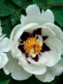 Пион древовидный — морозоустойчивый кустарник, достигающий высоты 2 м, с крупными ярко-зелеными листьями. На одном кусте может быть от 30 до 70 цветков. Диаметр каждого от 20 до 25 см. Продолжительность цветения 12-14 дней. Растение декоративно и после цветения из-за необычной формы листьев. Пион неприхотлив, устойчив к болезням. На одном месте без пересадки может расти более 50 лет. Рост энергичный.