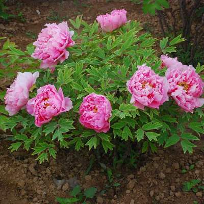 Пион древовидный — морозоустойчивый кустарник, достигающий высоты 2 м, с крупными ярко-зелеными листьями. На одном кусте может быть от 30 до 70 цветков. Диаметр каждого от 20 до 25 см. Продолжительность цветения 12-14 дней. Растение декоративно и после цветения из-за необычной формы листьев. Пион неприхотлив, устойчив к болезням. На одном месте без пересадки может расти более 50 лет. Рост энергичный.