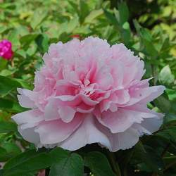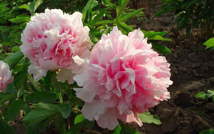 Пион Zhao Fen (Букет Розовых Гвоздик). Цветки розовые, корончатой формы, 18 см в диаметре. Имеют восхитительный аромат. Отличается своей морозостойкостью. Цветение обильное, раннее. Высота куста 120-150 см.
