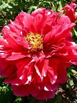 Пион Zhi Hong (Алые Паруса). Цветки пурпурно-красного цвета, корончатой формы, 16 см в диаметре. Цветет очень рано. Сорт устойчив к заболеваниям.
