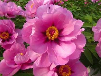 Пион Zhu Sha Hong (Живой Румянец) имеет очень крупные цветки и обильно цветет.