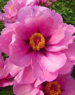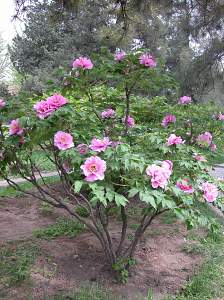 Пион Рока (Paeonia rockii) имеет ароматные, очень крупные цветки (20 см и более) белого, пурпурного или розового цвета. Это разновидность пиона древовидного из Китая (провинция Ганьсу). Растение быстрорастущее, в год побеги отрастают до 70 см.
