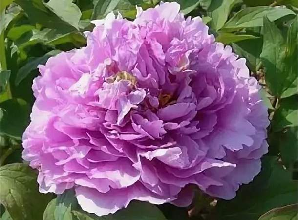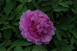 Пион Zi Lan Kui (Блю Чиф). Густомахровый цветок корончатой формы, диаметром около 16 см. Внешние лепестки крупные, округлые, пурпурные у основания. Внутренние узкие, гофрированные, лавандово-розовые.