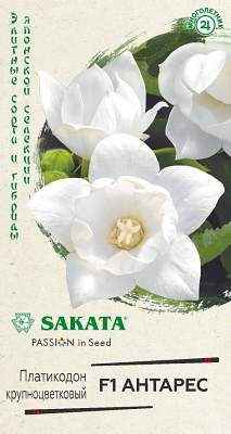 Платикодон Ширококолокльчик крупноцветковый Антарес F1 Н21. Травянистый многолетник из семейства Колокольчиковые заслуживает особого внимания и восхищения. Цветок платикодона обладает идеальной формой колокола и крупными размерами, что в сочетании с тонким, изящным стеблем придает ему особое очарование. Фонарики-бутоны распускаются в восхитительные, махровые, белоснежные цветочки с трогательными жилками на лепестках в два ряда. "Японские колокольчики" серии Астра отличаются компактной формой с небольшой высотой побегов (до 25 см). Такое растение удобно выращивать в качестве горшечной культуры в комнатных условиях, на балконах и в садах. В открытом грунте украсит бордюры, многолетние клумбы. Прекрасно себя чувствует как на солнце, так и в полутени. Размножают семенами. Чтобы получить цветущие растения в год посева необходимо семена сеять в начале марта, всходы можно ожидать через 2-3 недели. Стратификация необязательна, но после нее семена дружнее прорастают. Посевы содержат при комнатной температуре, умеренно поливают. В конце мая-начале июня в грунт высаживают сеянцы, сохраняя земляной ком (не любят пересадку). Растения развиваются довольно медленно. Зацветают в течение 13-15 недель после посева. Требуется прищипка. Платикодон — цветок неприхотливый и очень благодарный, он способен десятки лет цвести, не доставляя садоводу особенных хлопот.