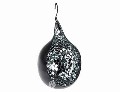 Оригинальный матовый подсвечник с порошковым покрытием, выложенный изнутри сверкающей зеркальной мозаикой. Как роскошно заиграет свет, обольщая праздничными бликами, когда внутри загорится свеча! А если свеча электрическая — вы сможете добавить сверкающую изюминку в ёлочный наряд, не опасаясь поджечь хвою.