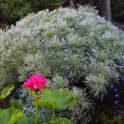 Полынь Шмидта Nana (Нана). Многочисленные, густо облиственные побеги образуют ажурный округлый куст или небольшую низкую плотную куртину, высотой 25-30 см. Листья из резные, серебристо-зеленые, густо опушенные. Основное условие успеха для видов с серебристой листвой — бедные, хорошо дренированные, нейтральные почвы и солнечное местоположение. Для успешной зимовки полыням, особенно низкорослым, необходим хороший дренаж.