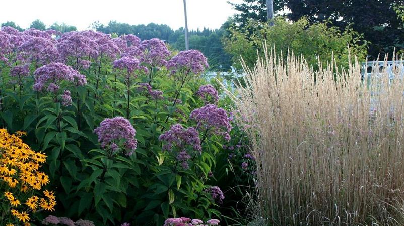 Отличный солитер, на фоне газона и одиночно, и в группе смотрится впечатляюще! Для многих растений завершение цветения означает резкую потерю декоративности. Но только не для посконника. Отцветшие соцветия становятся по-новому привлекательными, приобретая серебристо-белую окраску. И, кстати, будут продолжать радовать зимой в сухих букетах.