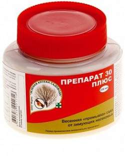 Препарат 30 Плюс. Весенняя "промывка" сада от зимующих вредителей. Защита плодовых деревьев, ягодных кустарников, цитрусовых, винограда и декоративных культур от зимующих стадий насекомых, клещей и "бродяжек"щитовок. Овицидный эффект-уничтожение зимующих яиц насекомых и клещей.