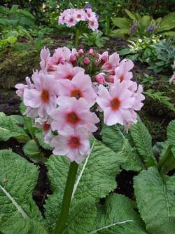 Примула японская Apple Blossom (Эппл Блоссом). Исключительно красивая примула. Высота 40-60 cм. Цветки нежно-розовые с малиновым глазком, диаметр до 2 см, собраны в многоярусные мутовки. Соцветие зонтик.